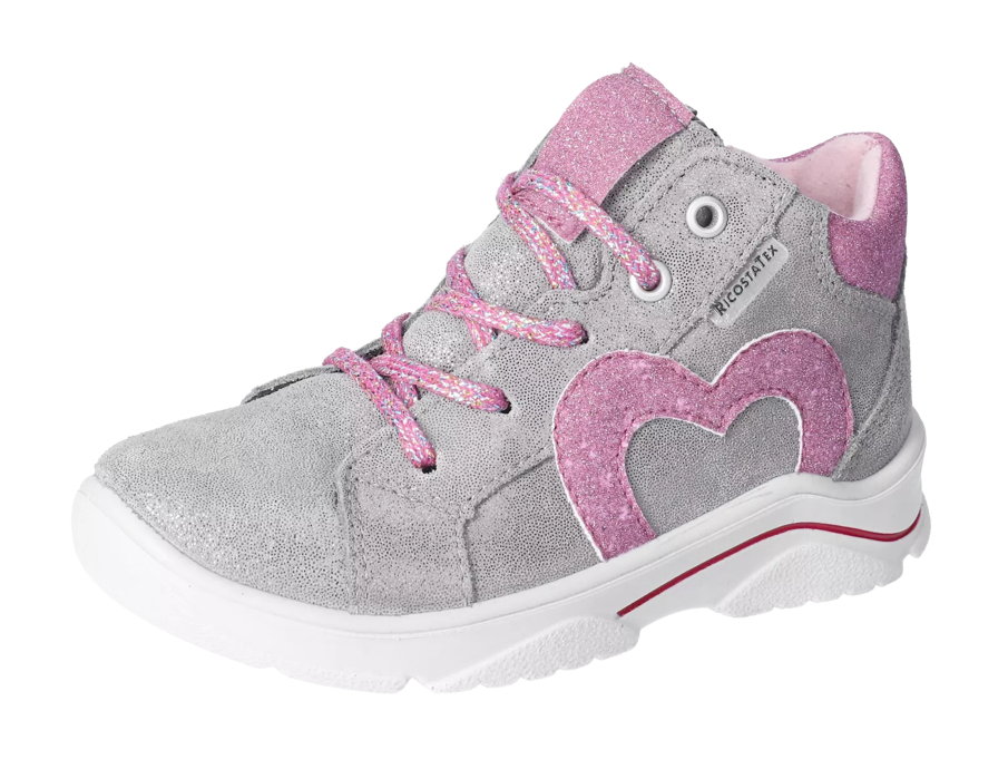Die putzigen Boots FELIZIA von RICOSTA erweisen sich dank ihrer robusten PU-Sohle als stabile Kinderschuhe. Damit die kleinen Füßchen immer in einem gesunden Klima unterwegs sind, wird die Vildona-Einlegesohle immer mal zum Lüften herausgenommen. Die goldigen Stiefel sind ideal zum Toben im Freien, da die Schnürung den Kleinen eine gute Stabilität bietet. Optisch sind die Kinderboots mit dem modernen Design ein echter Blickfang und werden mit den eingestickten Halbherzen an den Seiten von kleinen Mädchen, die sich gern bewundern lassen, auf Anhieb ins Herz geschlossen.